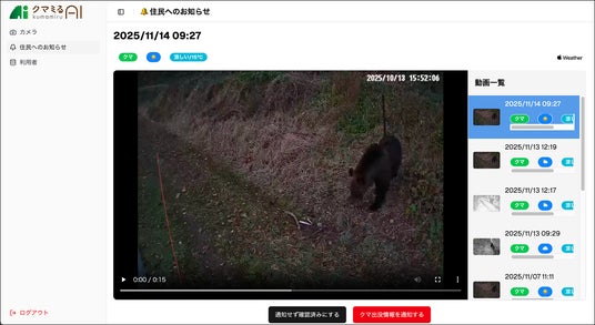 - 『クマミるAI』カメラで検知後、Webダッシュボードからクマ出没情報を確認