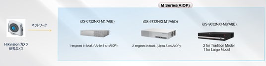 HikvisionのAIレコーダー(AIOP Series)を活用し、自社または他社製IPカメラの映像を分析。複数カメラを一括管理でき、カメラ交換なしで導入可能。検知アラームはレコーダー画面やモバイルアプリで確認できる。