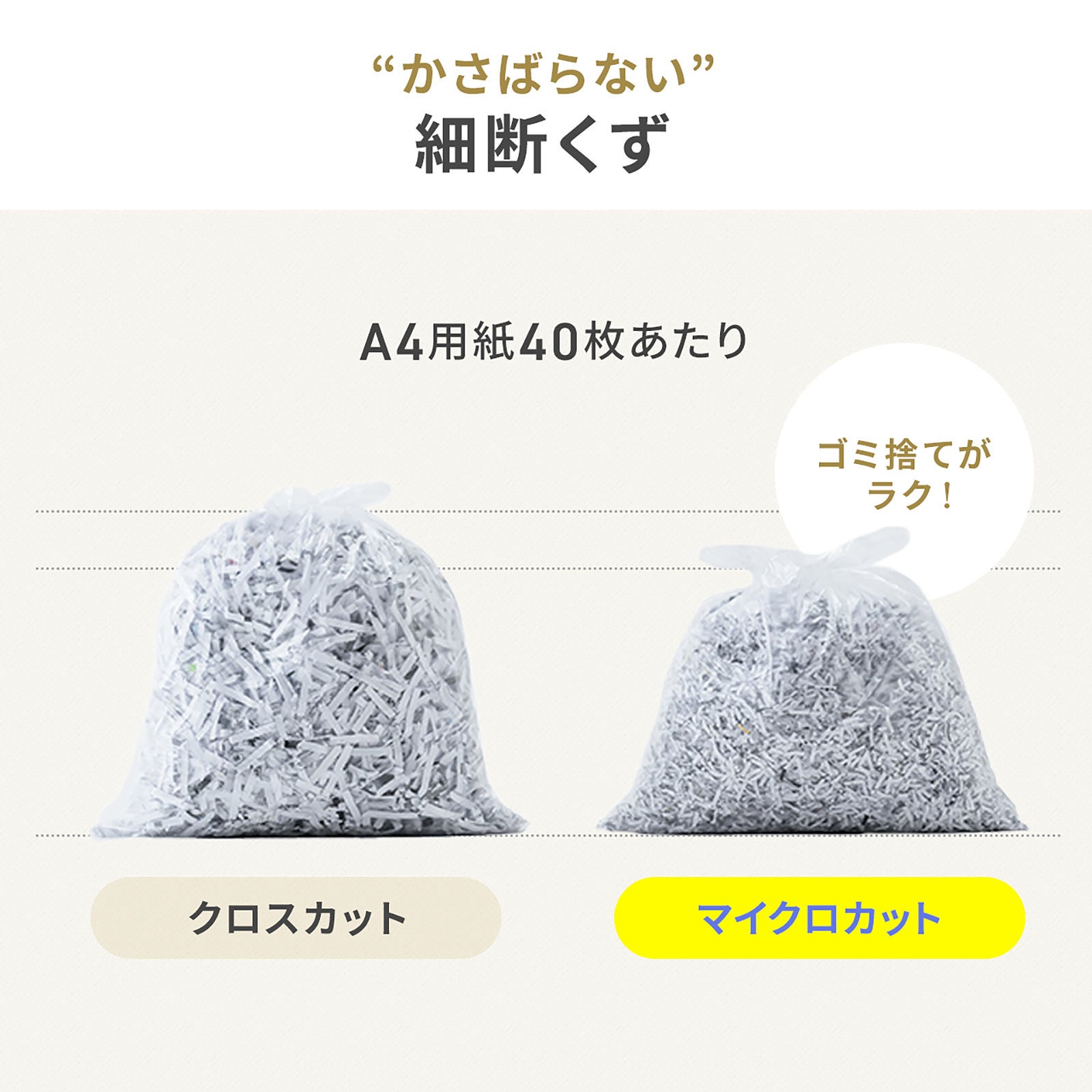 クロスカットよりさらに細かいマイクロカットを採用しており、判読がほぼ不可能なレベルまで細断し、レシートや明細書などの個人情報もしっかり保護します。家庭でもオフィスでも、セキュリティ対策を手軽に強化できるため、情報管理の意識が高まる今こそ導入したいアイテムです。