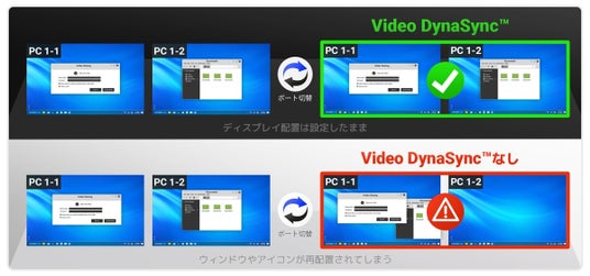 ・ATENテクノロジー Video DynaSync(TM)対応:ディスプレイ切替時に最適な解像度を自動設定