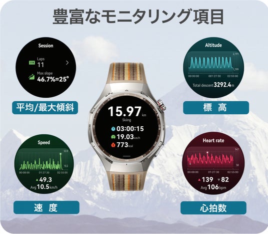 『HUAWEI WATCH GT 6シリーズ』はスノーボードやスキーに限らず、ゴルフ、サイクリング、登山、ランニングなどさまざまなスポーツに対応。