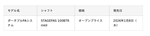 ヤマハ株式会社(以下、当社)は、プロフェッショナルオーディオ機器の新製品として、新たにUSB/Bluetooth(R)オーディオ入出力とUSB電源アダプターでの充電に対応した、シリーズ最小サイズ・バッテリー内蔵のポータブルPAシステム『STAGEPAS 100BTR mkII』を2026年1月8日(木)に発売します。