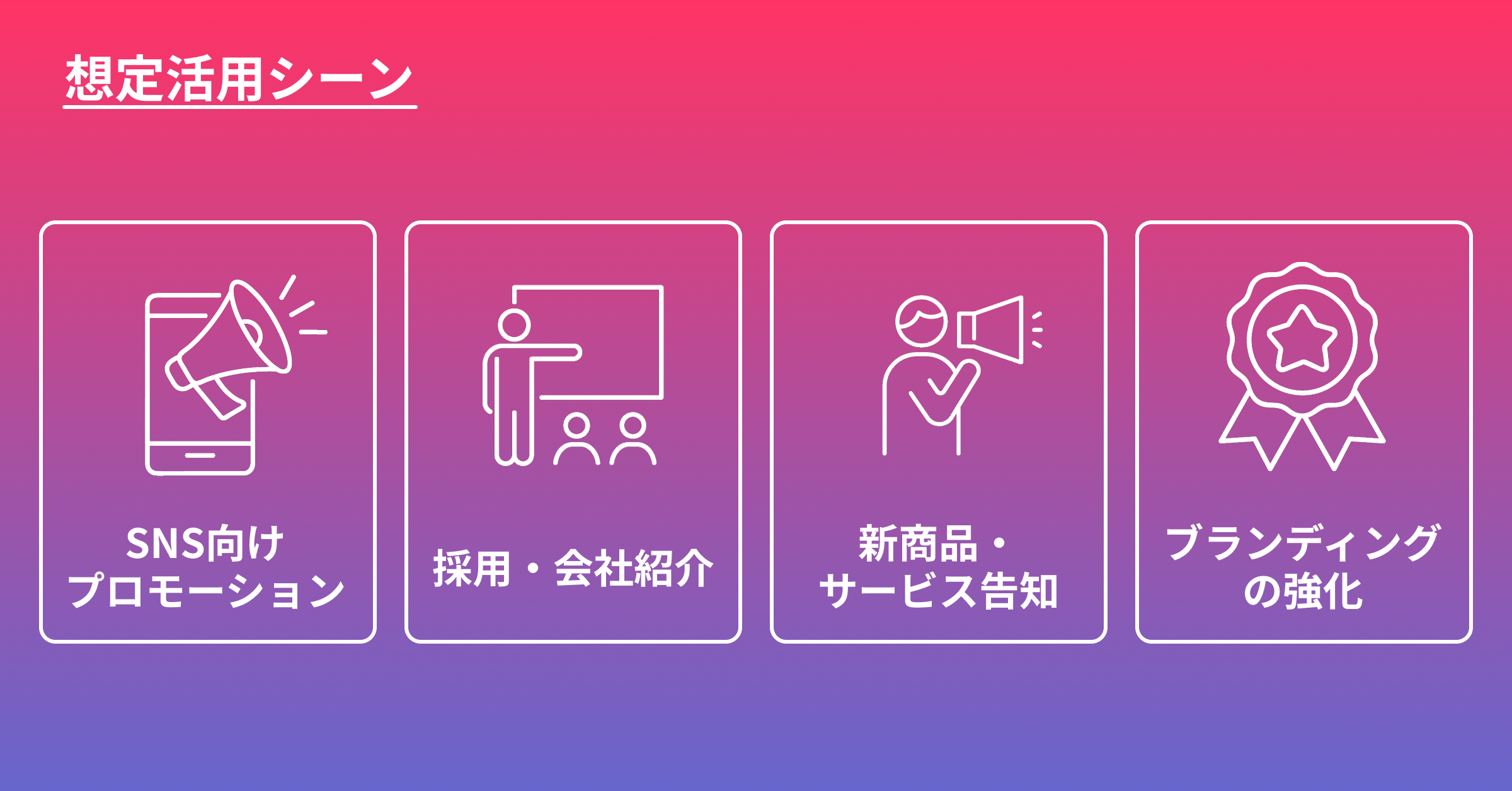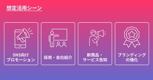 本サービスは、さまざまなビジネスシーンでの活用を想定しています。- 企業・サービスの認知向上を目的としたSNS向けプロモーション動画