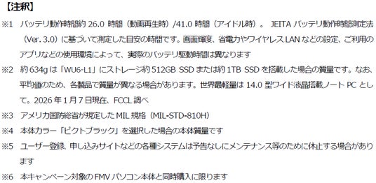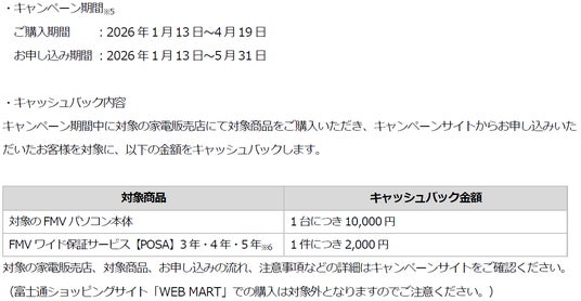 お得な「FMV ’26 SPRING キャッシュバックキャンペーン」の実施