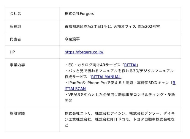 株式会社Forgersは、VR/AR開発を行うスタートアップです。様々な企業様に対し、新製品の開発支援や自社ビジネスへのVR/AR導入支援を行います。