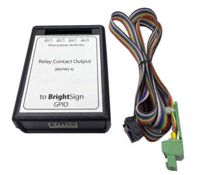 BrightSign専用GPIO接点出力ユニット『GPIO接点出力ユニット(型番:BR/PRO-4)』を発売しました。BrightSignのGPIO出力を無電圧接点入力の機器に対応した4系統のGPIO出力として安全に利用できる信号へ変換します。