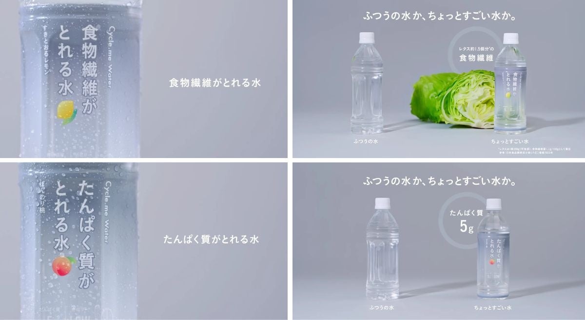 フロサウナTVで放映する「Cycle.me」のCMでは、水分補給で栄養がとれる「食物繊維がとれる水」と「たんぱく質がとれる水」の魅力をストレートに表現しています。味わい・カロリーにも言及し、「ふつうの水か、ちょっとすごい水か。」というメッセージで、日々の栄養補給への意識を前向きに変えたいというランドの想いを伝えています。