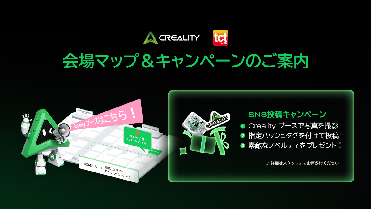 Creality(本社:中国・深圳)は、2026年1月28日(水)から1月30日(金)までの3日間、東京ビッグサイトにて開催される、アディティブ・マニュファクチャリング専門展示会 「TCT Japan 2026」 に出展いたします。