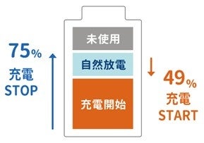 ACを接続したままで使用する環境でもバッテリーに優しい当社オリジナル機能。AC給電停止時のみ補助バッテリーとして機能するため、バッテリーの負荷を大幅低減。