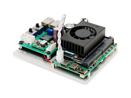 今回発売するGPU PCオプションには、NVIDIA(R) Jetson Orin(TM) NXを搭載した、YUAN社製の「Pandora(16GB版)」を採用しました。NVIDIA(R) Jetson プラットフォームに提供される強力なツール群が活用可能で、外部RGBカメラなどから取得した画像に対して、高度な演算・解析などを高速に実行するなど、従来よりもさらに進化したロボット制御を実現することができます。