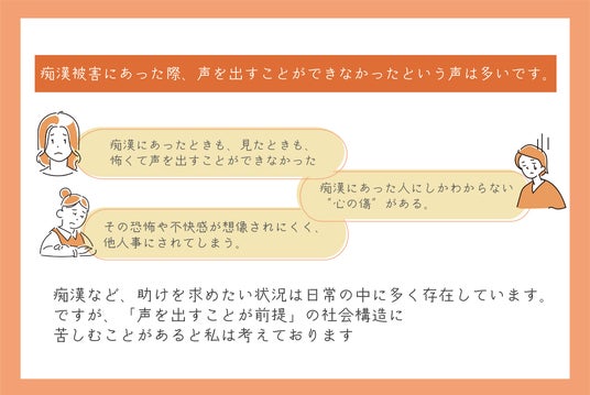 プロジェクト名:声を出せない痴漢被害者を支える社会の仕組みづくり(卒業制作)実施主体:東北芸術工科大学 デザイン工学部 企画構想学科