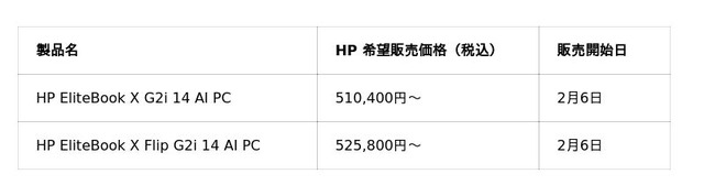 *6:1 kg以下は2026年4月以降に発売予定のHP EliteBook X G2i 14 AI PCの一部モデル。構成に電源アダプターは含まれていません。