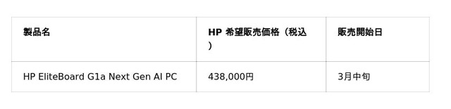 *1:AIアクセラレーション(NPU ≥ 40 TOPS)を内蔵するすべてのHP製PCを比較したHPの社内分析に基づいています(製品発表時点)。676gは最小構成の場合です。「HP EliteBoard G1a」はHPが製造したAI対応PCの中で最もコンパクトなものとなっています。HPの製品仕様および過去のポートフォリオデータにより裏付けられています。