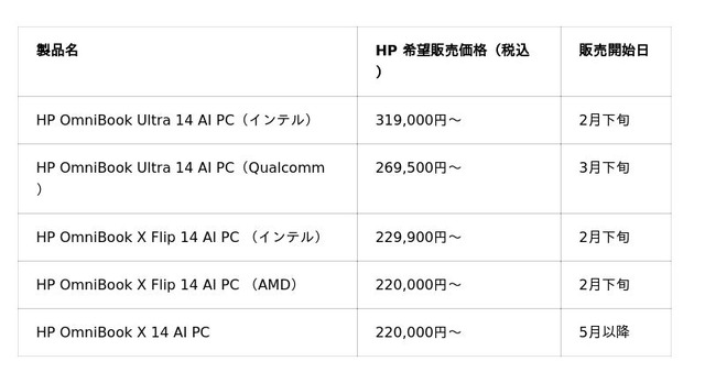 〈個人向けノートPC:「HP OmniBook」シリーズ〉