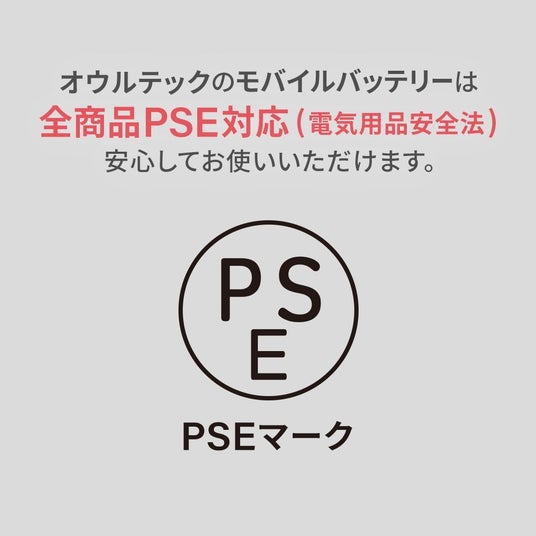 PSE適合製品日本の法律である「電気用品安全法」で定められた検査を実施したPSE適合製品です。安心・安全にご利用いただけます。