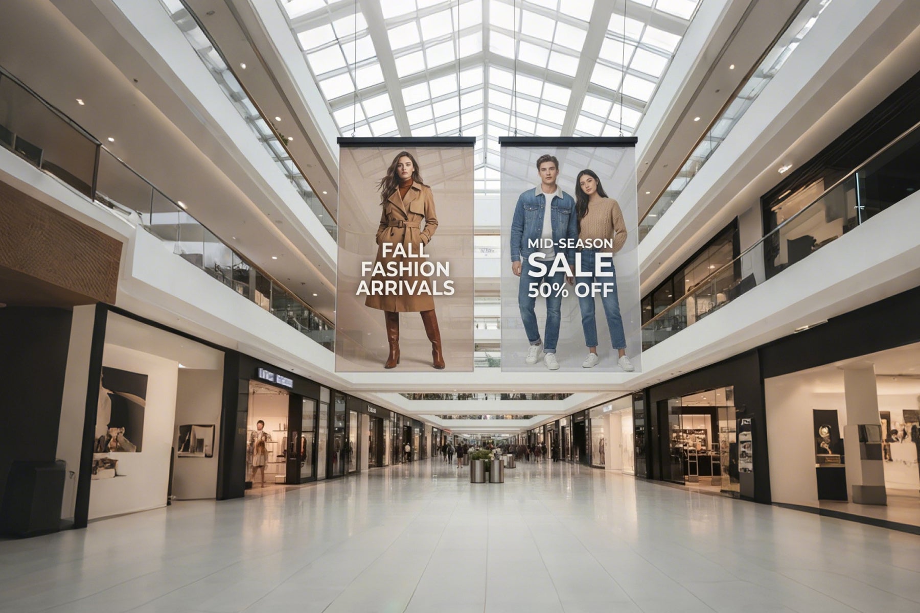 従来の窓面設置にとどまらないメッシュLEDビジョンの活用を想定し、屋外壁面に、屋内の両面フラッグ(縦幕・バナー)、空間演出用サインといった用途へ展開できるよう、軽量・薄型・高輝度設計の新たなLEDビジョンの可能性を追求した製品となります。