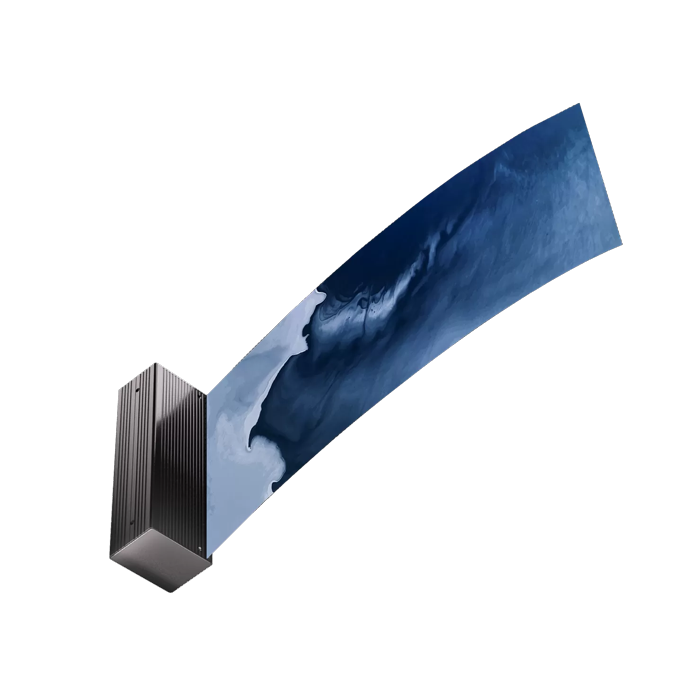 空間を遮らず、立体的な情報発信を可能にする新しいサイネージ表現を実現します。