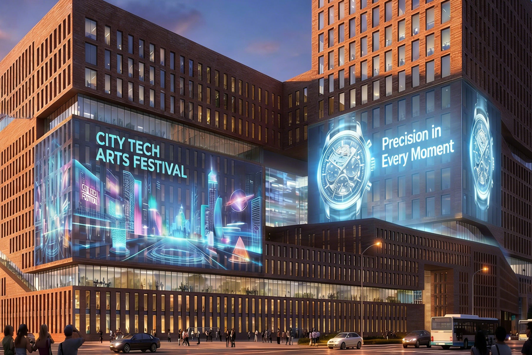 屋外での遠距離・近距離の双方で高い視認性を確保し、都市空間・商業施設・ファサード演出に最適です。