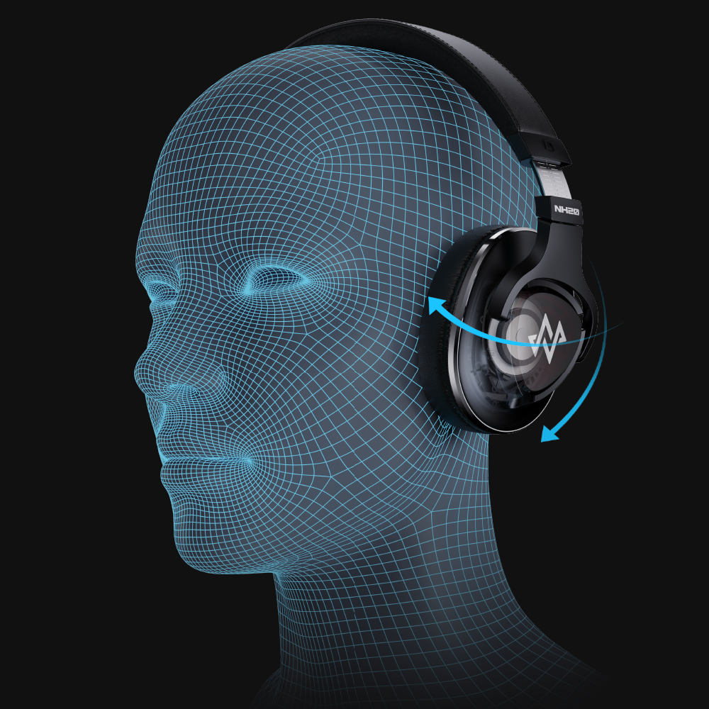 NH20は頭部の構造を参考に、ハウジングに2つの可動域もたせることで耳の平面とより平行になるよう設計されています。