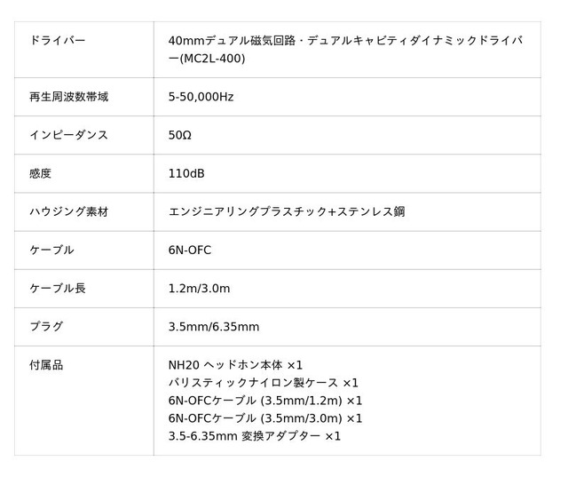 NH20のチューニングコンセプトは、優れた密閉型ヘッドホンの性能を前提に、ミュージシャンにリファレンスレベルの音質を提供することです。