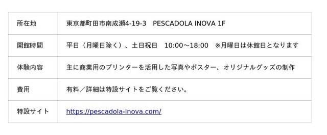 今回の「PESCADOLA PRINT Lab.」は、ペスカドーラ町田が運営する複合施設「HUMAN HUB COMPLEX INOVA(ヒューマン ハブ コンプレックス イノバ)」内に設置されています。本施設は、人と人が出会い、つながり、新たな価値を生み出す「HUB」となることを目指し