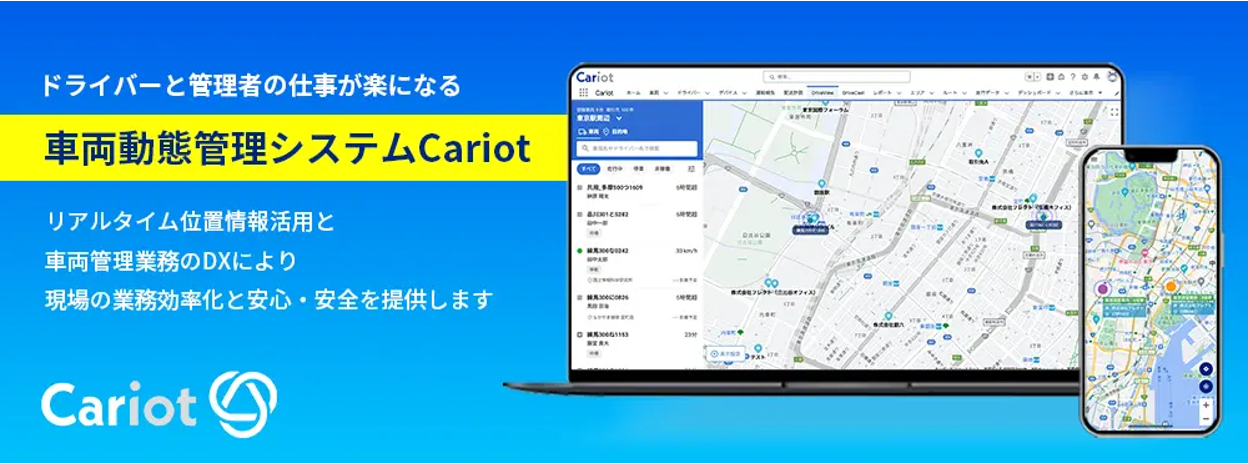 車両管理の業務をまとめて管理、働き方改革クラウド「Cariot」日本語で話しかけるように確認できる、新型AI車両管理ポータルをデモで紹介また同イベント会場にて、ソラコムのグループ会社である株式会社キャリオットが、車両管理業務の効率化・高度化を支援するクラウドサービス、働き方改革クラウド「Cariot」を出展します。キャリオットブースでは、車両管理業務におけるAI Agent構想の第一歩となる、AI車両管理ポータル「Cariot Copilot」のデモンストレーションをご覧いただけます。