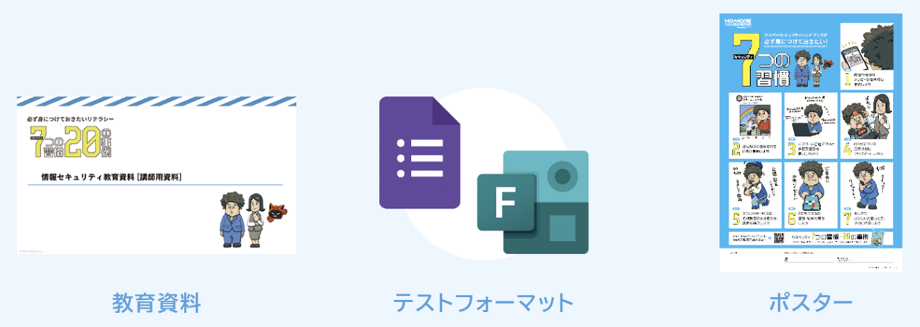 企業や学校の教育担当者向けに、教材作成の負担や専門知識の不足といった課題を解消することを目的とし、教育コンテンツ(パワーポイント形式で編集可能な教育資料、テストテンプレート、ポスター)をすべて無償提供。年1回の内容更新も予定しています。