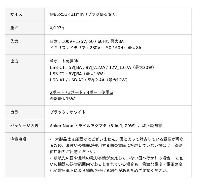 Anker Nano トラベルアダプタ(5-in-1, 20W)| トラベル用変換プラグ