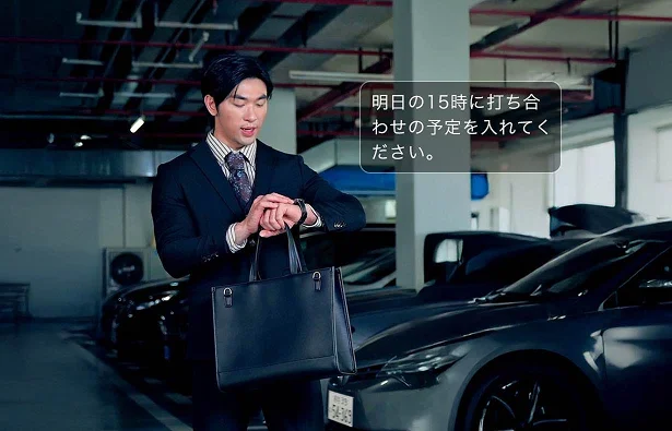 AIウォッチからGPT-5を呼び出し、予定やタスクを音声入力すると、アプリ内のカレンダーに登録され、リマインドされます。