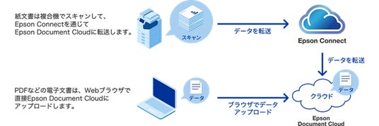 ・紙の文書はエプソンの複合機でスキャンし、「Epson Connect」(注3)経由で直接クラウドにアップロードが可能です。