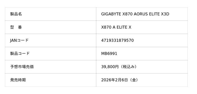 株式会社ニューエックス(本社:東京都千代田区)は、取り扱いメーカーであるGIGABYTEより、AMD X870 チップセットを搭載した ドスパラ 限定モデル ATX マザーボードの「GIGABYTE X870 AORUS ELITE X3D」を2026年2月6日(金)に発売いたします。