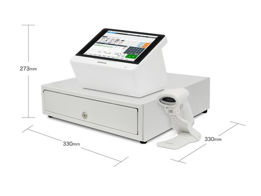 POSレジ本体『Seav-ME』バーコードリーダーやカスタマーディスプレイを付けることでキャッシュレス決済専用レジとしてもご利用いただけます。