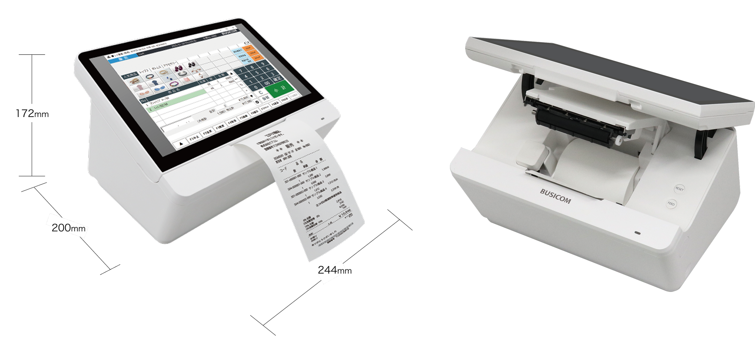 - レシートプリンターを内蔵しており、タブレットレジよりコンパクトな設置を実現