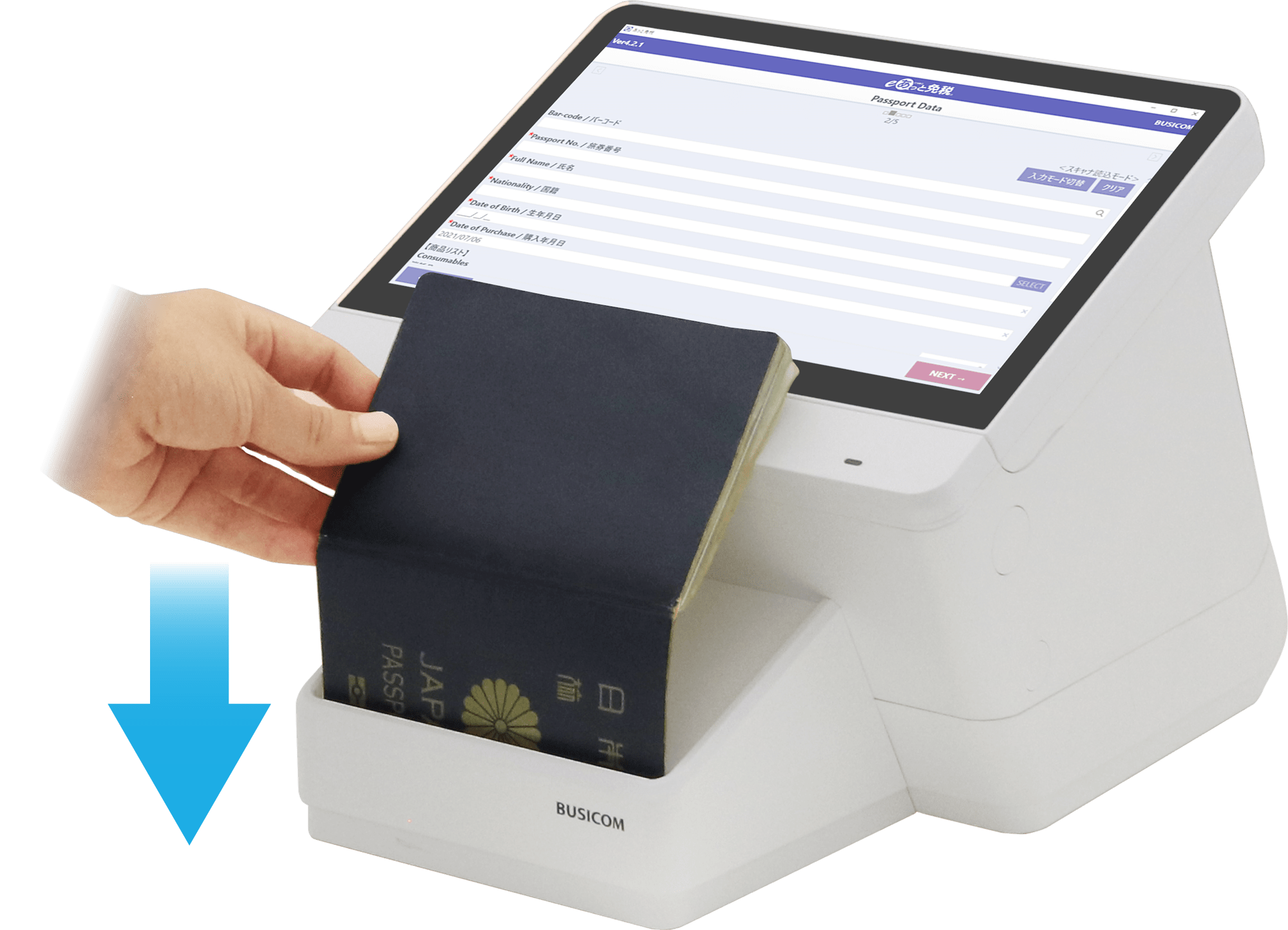 - 免税販売にも対応!スマートに一体化するパスポートリーダーユニットの外付けが可能(別売)