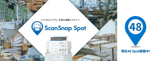 「ScanSnap Spot」は、カフェ、図書館、自治体施設、コワーキングスペースなど、どなたでも利用できる公共空間・施設にiX2500を設置し、訪れた方が自由に・簡単にスキャンいただける新しい取り組みです。本日より、全国48か所のSpotで運用を開始し、今後も設置エリアを順次拡大してまいります。