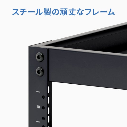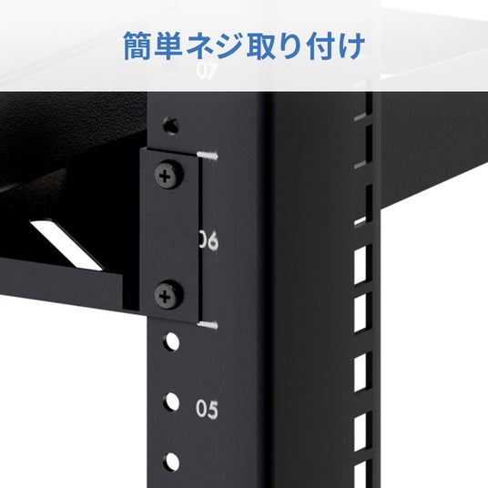 ネジ(M6)が10個付属しています。ケージナットを挿入する手間がなく、ネジだけで機器固定できます。