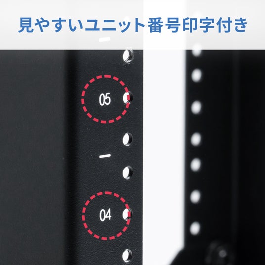 機器のレイアウト作業時に取り付け穴を間違えないよう、ユニット番号が大きめに印字されています。