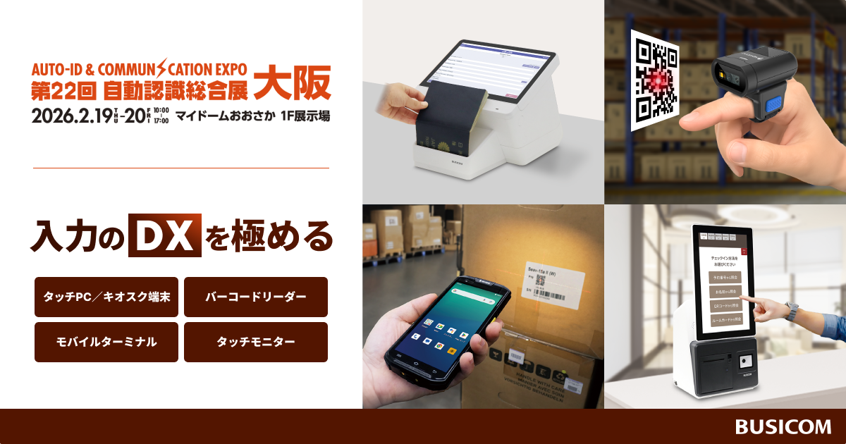 株式会社ビジコム(所在地:東京都新宿区、代表取締役:中馬 浩)は、2026年2月19日(木)~20日(金)の2日間、関西で唯一の自動認識技術&ソリューションの専門展示会である「第22回自動認識総合展 大阪」に初出展いたします。