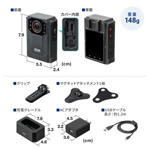 サンワサプライ株式会社(本社:岡山市北区田町1-10-1、代表取締役社長 山田 和範)が運営している直販サイト『サンワダイレクト』では、IP68防水と赤外線暗視に対応し、最大3200×1800の高解像度で現場状況を昼夜問わず鮮明に記録できるボディカメラ「400-CAMBD001」を発売しました。
