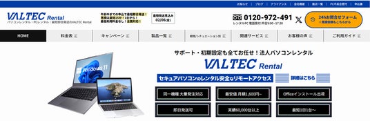株式会社バルテック(本社:東京都新宿区、以下バルテック)のグループ会社、株式会社バルテックネットワークス(本社:東京都新宿区、以下バルテックネットワークス)が運営する法人パソコンレンタルサイト「バルテックレンタル」。