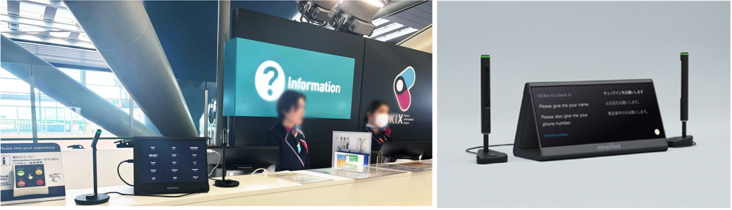 本実証実験は、アジアの玄関口として国内外から多くの訪日客が訪れ、1時間あたり約60~100人の外国人利用者が利用する関西国際空港の第1ターミナル4階案内カウンターに「ポケトーク X」を設置し、空港利用者と案内スタッフとの対面コミュニケーションにおける有効性や課題を検証するものです。