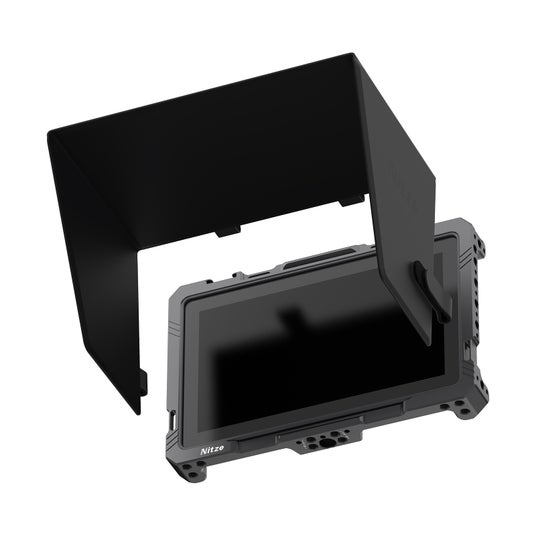 着脱式のサンフードが付属しており、直射日光の強い場所で効果的に光を遮断し、良好な視認性を提供。屋外でもモニターを確認しやすくなります。