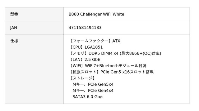 シー・エフ・デー販売株式会社(社長:三谷弘次、本社:愛知県名古屋市)が代理店を務めますASRockブランドの新製品として、Intel B860チップセット搭載マザーボード 3製品、AMD B850チップセット搭載マザーボード 2製品を発売いたします。