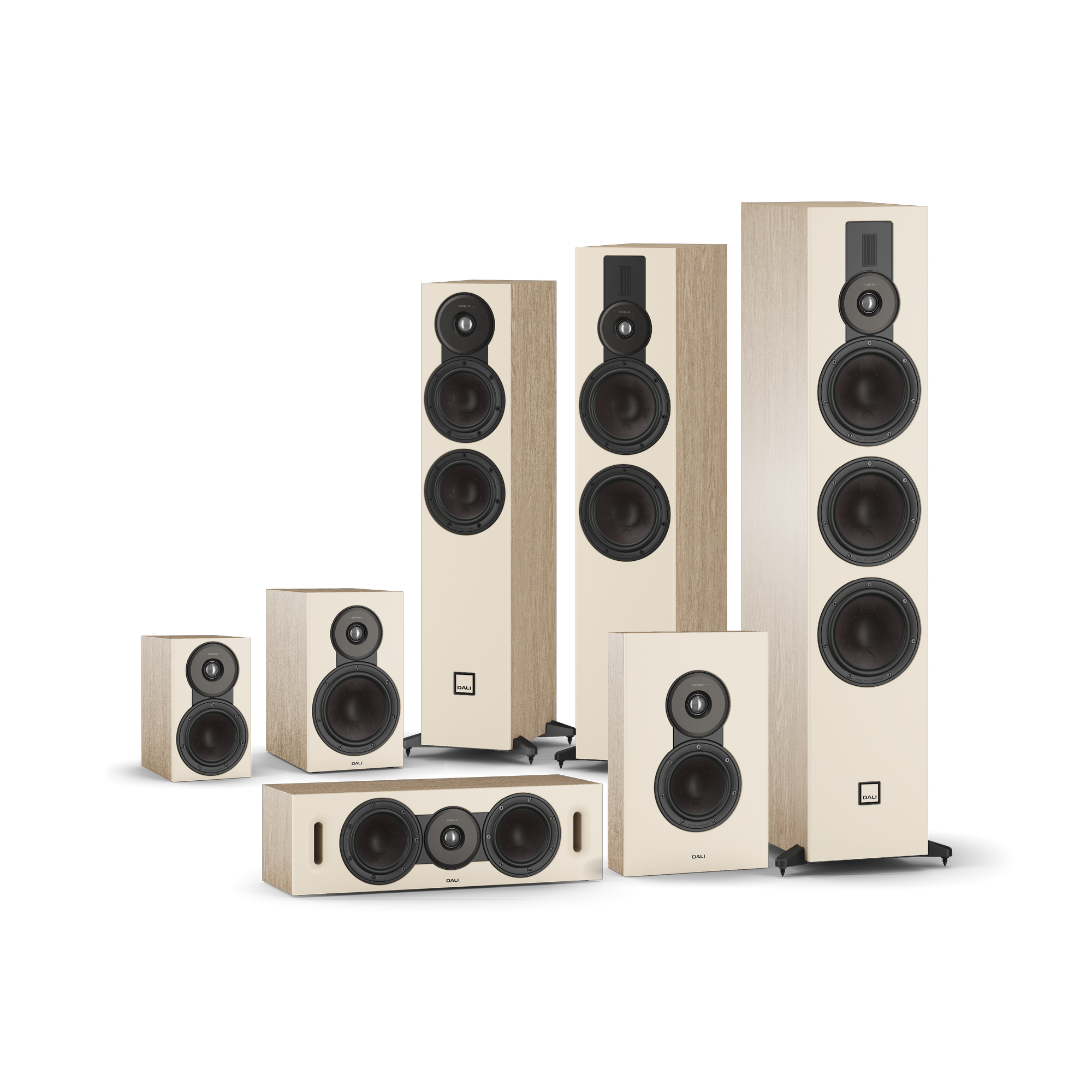 SONIKシリーズの各スピーカーには、すべてのDALI製品に共通する「細部への徹底したこだわり」が息づいています。キャビネットにはCNC加工を施したMDF材を採用し、内部補強による低共振化を実現。さらに、クリアな低域レスポンスを生み出すデュアルフレア・バスレフポートを搭載しています。カラーは、ブラック・アッシュ、ホワイト、ウォルナット、ナチュラル・オークのモダンな4色で美しく仕上げました。