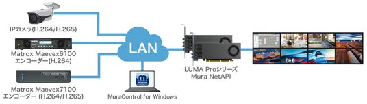 OEMシステム構築向け高性能グラフィックボード「Matrox MURAシリーズ」と組み合わせて、H.264/H.265のIPストリームを受信して多数の映像を同時表示できます。