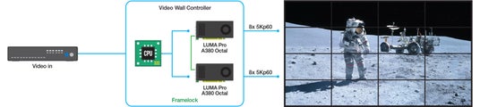 さらに、本製品は同梱のフレームロックケーブルにより複数のグラフィックボードを連結できます。2枚のボードを連結して、最大4K/5K×16面の大型ビデオウォールの構築が可能です。