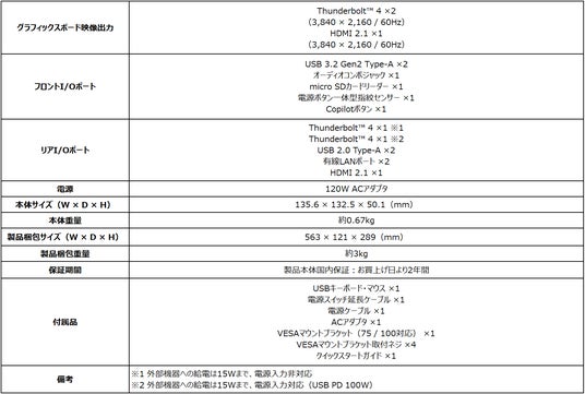 ・Thunderbolt(TM) 4 ×2、HDMI 2.1 ×1を使用し、最大3画面の映像出力に対応でき、