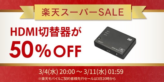 50%OFF対象の「HDMI切替器」は、4K60Hzに対応し、複数のゲーム機やレコーダーの切り替えに利用される人気製品です。この機会にぜひお買い求めください。