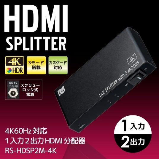 ■4K60Hz対応1入力2出力HDMI分配器(動作モード機能付) RS-HDSP2M-4KA