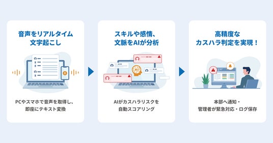 当社は、生成AIを活用した “従業員を守り、現場を可視化する” 仕組みを通じて、カスハラ対策の推進と、健全な顧客関係の構築を支援してまいります。